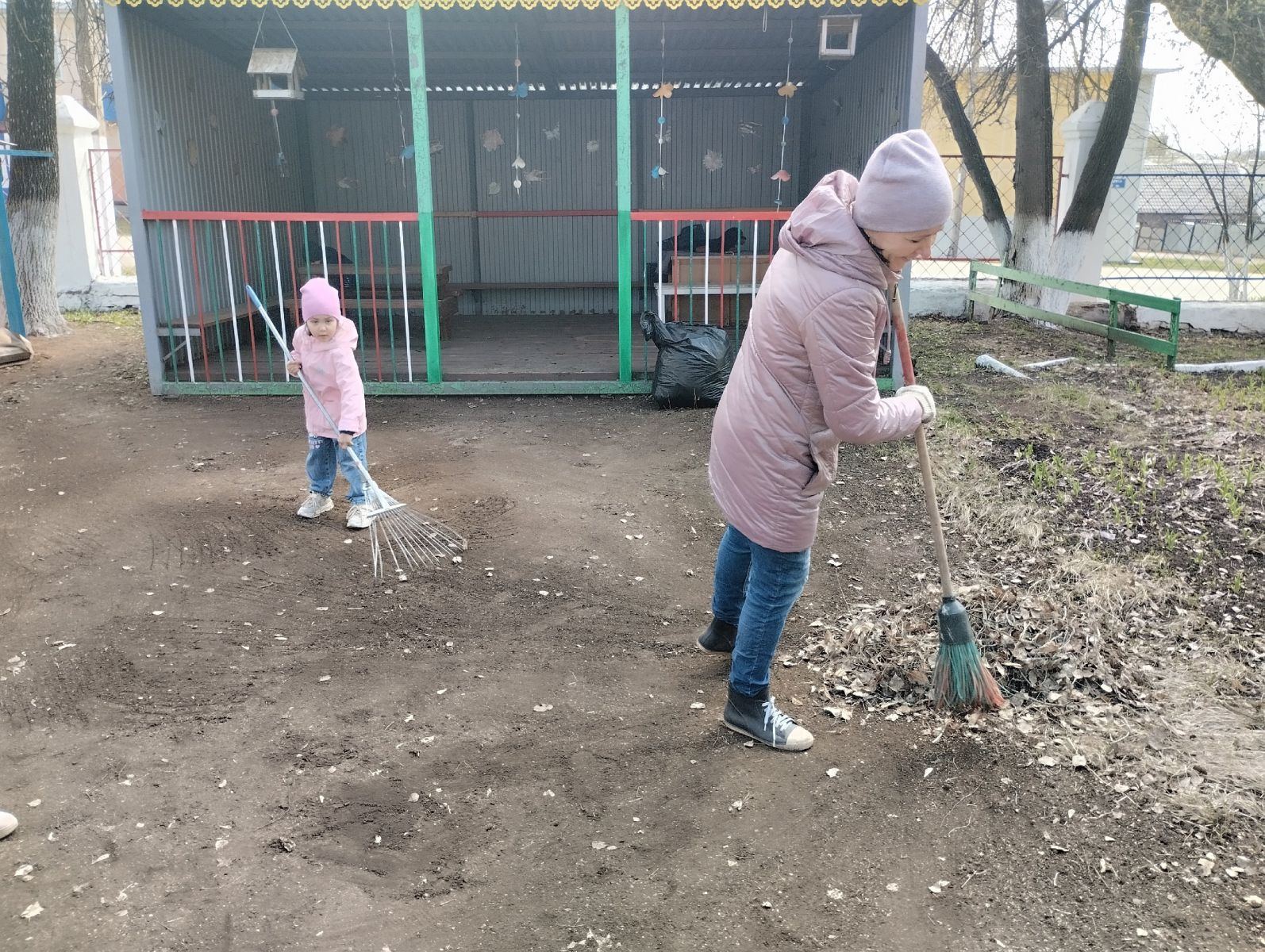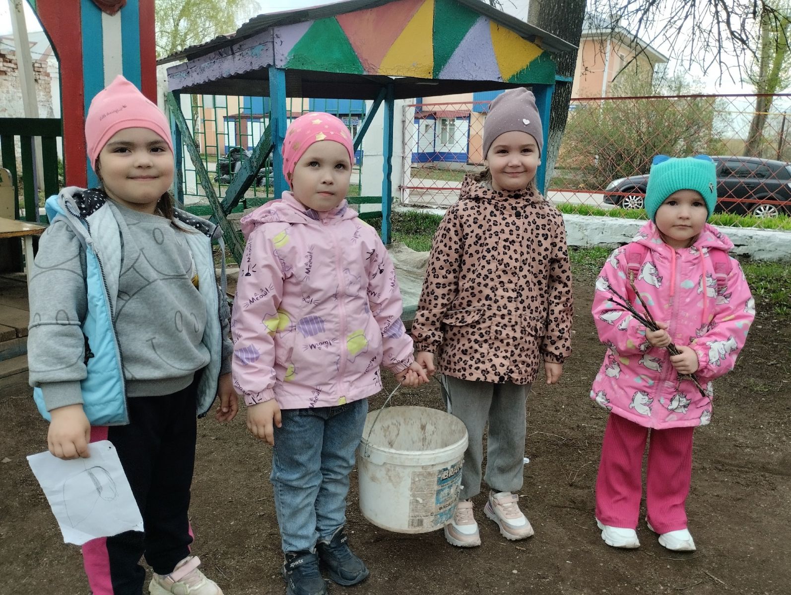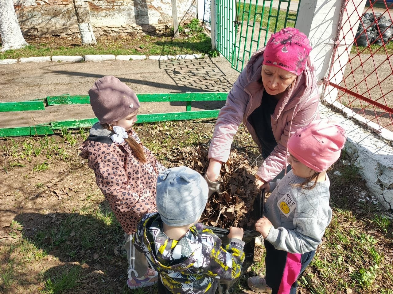 "Гномики" төркемдә тәрбияләнүчеләр уен участогын җыештыруда актив катнаштылар. Барысы да бергәләп чүп-чар җыйдылар, шул ук вакытта күңелле итеп уйнарга шаярырга һәм бер-берсен дәртләндерергә дә онытмадылар.