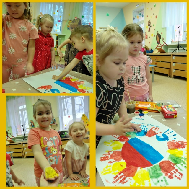 Ярким событием стало создание коллективного плаката. Каждый ребёнок оставил отпечаток своей ладони, символизируя дружбу народов нашей многонациональной страны. ️