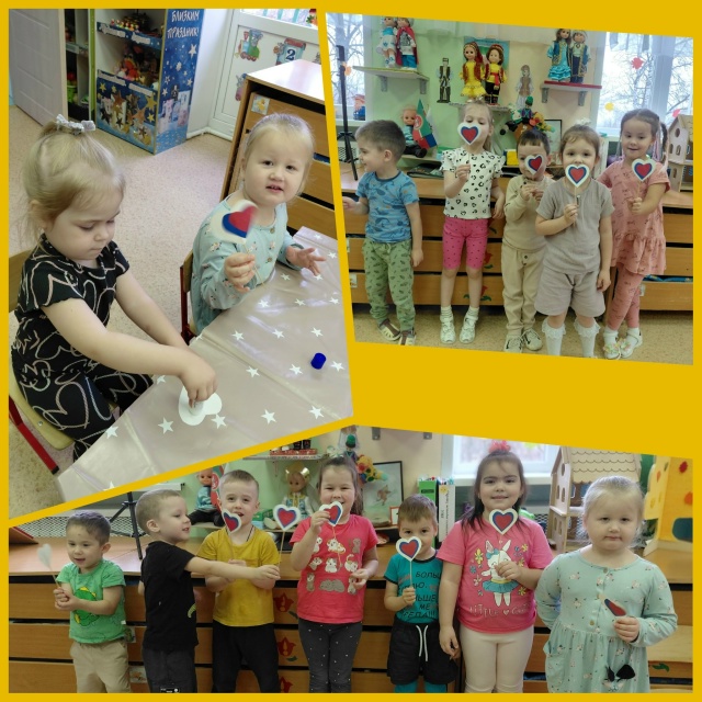 А ещё ребята сделали своими руками трогательные сердечки. Для оформления использовались традиционные цвета российского триколора: белый, синий и красный.