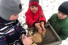 Зимой даже лесные птицы начинают тянуться к человеческому жилищу. Голод заставляет на время забыть о естественной осторожности. Подкормка зимующих птиц приносит пользу не только пернатым, но и в обучении и воспитании детей. Дети через беседы, познавательные занятия и наблюдения узнают о различных видах птиц своей местности, узнают характерные особенности внешнего вида, поведения, учатся заботиться о птицах. / Кышын хәтта урман кошлары да кеше торагына тартыла башлый. Ачлык табигый саклык турында онытырга мәҗбүр итә. Кышлаучы кошларны ашату канатлы кошларга гына түгел, балаларны укытуда һәм тәрбияләүдә дә файда китерә. Балалар әңгәмәләр аша, танып белү дәресләре һәм күзәтүләр аша үз җирләрендә яшәүче кошларның төрле төрләре турында беләләр, тышкы кыяфәтнең үзенчәлекле үзенчәлекләрен беләләр, кошлар турында кайгыртырга өйрәнәләр.