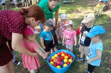 Для успешной реализации свободного художественного творчества детей дошкольного возраста в летний период в нашем детском саду функционирует творческая площадка "Театральная". В теплое время года праздники, как правило, проводятся на улице. На сцене летнего театра можно петь и танцевать, вручать награды, проводить конкурсы и просто играть в театр. С раннего детства всем известна русская народная сказка «Колобок». По мотивам этой сказки организовали театрализованное представление на нашей творческой площадке с детьми средней и старшей групп.
