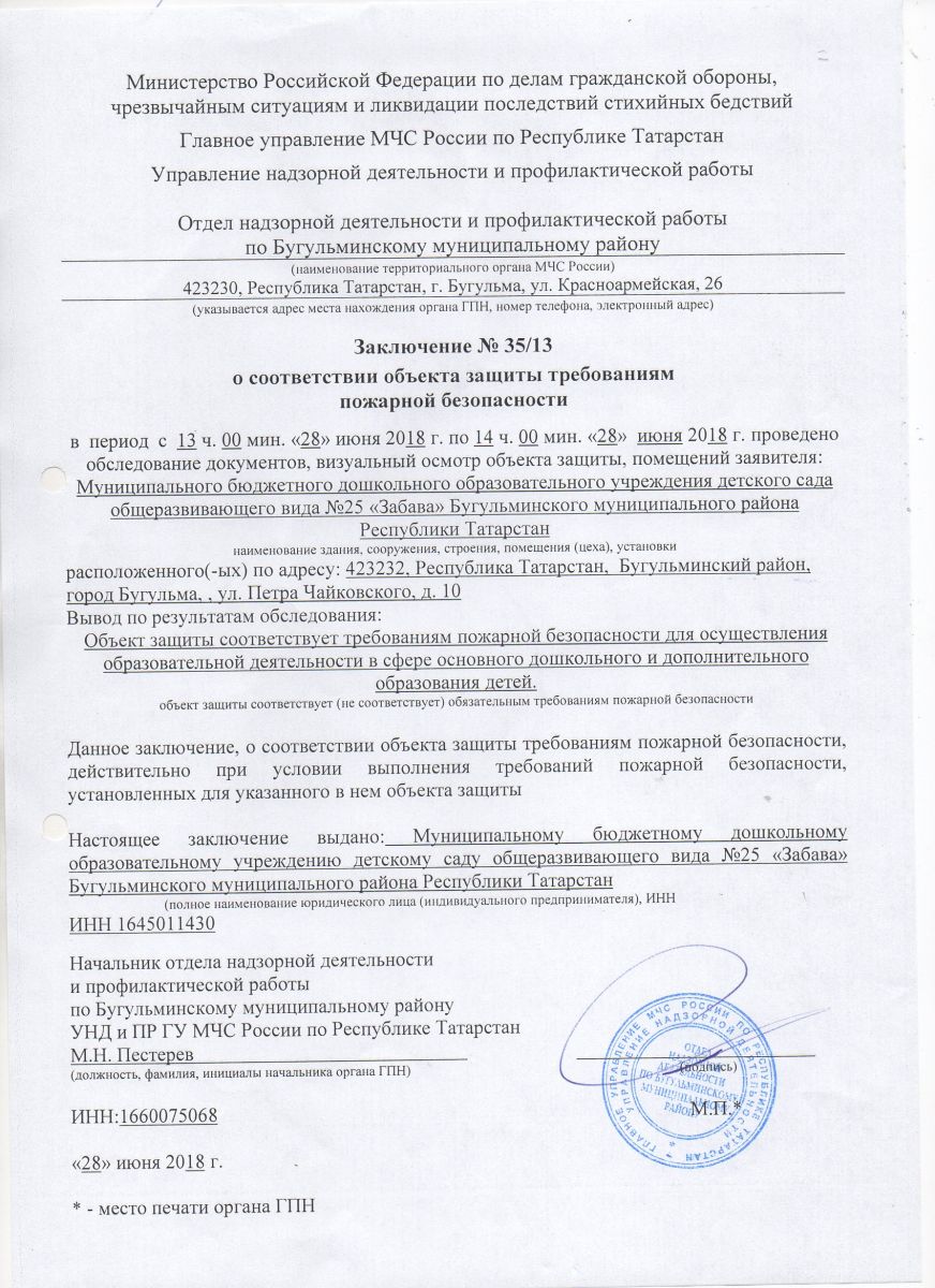 Заключение о соответствии объекта защиты требованиям пожарной безопасности