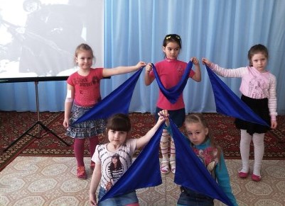 Воспитатели старшей и татарской групп познакомили детей с эмблемой 70 летия Победы.