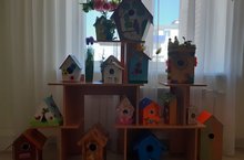 Очень интересный и яркий весенний парад пернатого «населения». Радуясь весне и теплу, они улучшают настроение нам своими птичьими песнями. В детском саду прошел семейный конкурс «Веселые скворечники». Птичьи домики получились самых разных форм, размеров и видов. Потрудились воспитанники и их родители на славу, каких только скворечников, сделанных с фантазией и умелыми руками, здесь не было! В каком восторге были наши дети, когда с гордостью приносили вдетский сад скворечники, сделанные заботливыми руками родителей. Эпилогом конкурса явилась выставка скворечников в холле образовательного учреждения.