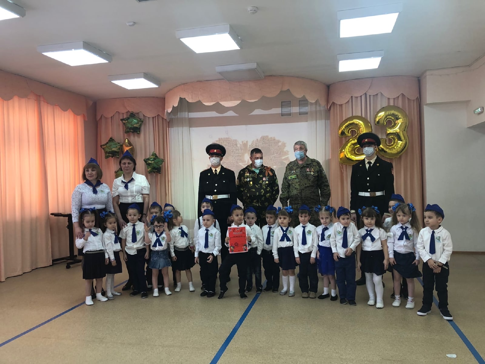 В преддверии замечательного праздника Дня защитника Отечества в детском саду № 26 «Бэлэкэч» провели смотр строя и песни среди воспитанников образовательного учреждения. Его целью стало формирование чувства патриотизма и любви к России, уважительного отношения к Защитникам Отечества, чувства гордости за Российскую Армию. Воспитанники, педагоги и родителями серьезно подошли к подготовке к мероприятию: готовили костюмы, разучивали песни, девиз, речевку, учились маршировать, выполнять команды командира отряда. Всё было по-настоящему: выполнение команд направо, налево, прохождение по залу, перестроения в "двойки", "тройки", расхождение и исполнение строевой песни, рапорт командира.Воспитанники всех возрастных групп, начиная от самых маленьких и заканчивая детьми подготовительных групп, вместе со своими педагогами представили определенный род войск, продемонстрировали свои навыки строевой подготовки, выполняли команды и торжественным строем прошли перед компетентным жюри: кадетами Государственного бюджетного общеобразовательного учреждения "Бугульминская кадетская школа-интернат имени Героя Советского Союза Газинура Гафиатуллина", а также представителями Военного комиссариата г.Бугульма и Бугульминского района Республики Татарстан. Все группы выступили более, чем достойно!!! По итогам конкурса всем вручены дипломы.Это мероприятие получилось торжественным и волнительным. У детей и взрослых оно вызвало много положительных эмоций. Этот смотр станет доброй традицией и послужит фундаментом для воспитания у будущего поколения гражданско-патриотических чувств, уважения к боевому прошлому и настоящему России.