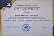 Коллективу детского сада в лице заведующей Косяковой Светланы Александровны объявлена благодарность от ГБУ "Безопасность дорожного движения" за оказанную помощь в подготовке и проведении городского форума - выставки "Бугульма - город возможностей". Молодцы!