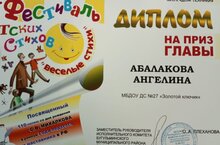 Поздравляем Абалакову Ангелину, призера и воспитанницу старшей группы №1,принявшую участие в городском Фестивале детских Стихов «Веселые стихи», посвященном 110-летию со дня рождения С. В. Михалкова в рамках «Года педагога и наставника» в РФ. Желаем дальнейших побед!