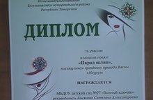 Поздравляем воспитателя татарского языка Тахауву Санию Галимулловну и детский коллектив (Мубаракшину Аделину, Шагееву Альбину, Идиятуллину Диану, Бояринцеву Мираславу, Пятаеву Анастасию, Шайхутдинову Арину) занявших 2 место в муниципальном музыкальном конкурсе «Әнием турында җырлыйбыз» - «Поём о маме», посвященного Международному женскому дню «8 марта» среди дошкольных образовательных учреждений Бугульминского муниципального района Республики Татарстан организованного в рамках ММО воспитателей по обучению детей татарскому языку. Цель конкурса - приобщение педагогов и воспитанников к вокальному творчеству, посредством национального репертуара добиваясь чистоты звучания, правильного произношения музыкально выразительного пения.
