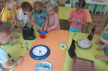 В рамках этой недели в группах нашего детского сада проходил тематический День часов. Вместе с воспитателями ребята знакомились с часами, историей их возникновения, устройством, видами (механические, солнечные, песочные, электронные), беседовали о значении времени в жизни каждого человека, о режиме дня в детском саду и дома, учились определять время по часам, разучивали стихи о часах, смотрели познавательные мультфильмы об их устройстве.