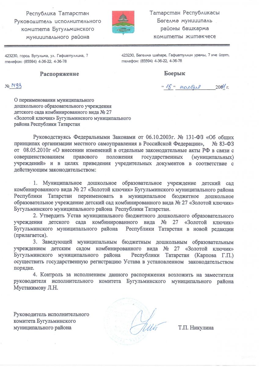 Муниципальное бюджетное дошкольное образовательное учреждение детский сад комбинированного вида №27 "Золотой ключик" Бугульминского муниципального района Республики Татарстан/ Татарстан Республикасы Бөгелмә муниципаль районы мәктәпкәчә тәрбия һәм белем бирү муниципаль бюджет учреждениесе "Золотой ключик" 27 нче катнаш төрдәге балалар бакчасы