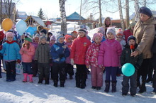 Воспитанники детского сада проводы зимы отметили спортивно-игровым праздником. Ребята состязались в силе, ловкости и выносливости в эстафетах и спортивных играх под весёлые народные наигрыши. После соревнований, в которых не было побеждённых, а все стали победителями, ребята угостились блинами.