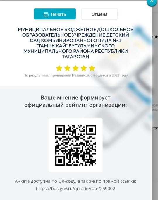 Вы можете оставить мнение о нашей организации. Чтобы оценить условия осуществления образовательной деятельности наведите камеру Вашего телефона и отсканируйте QR-код. Перейдя по ссылке, Вы сможете: