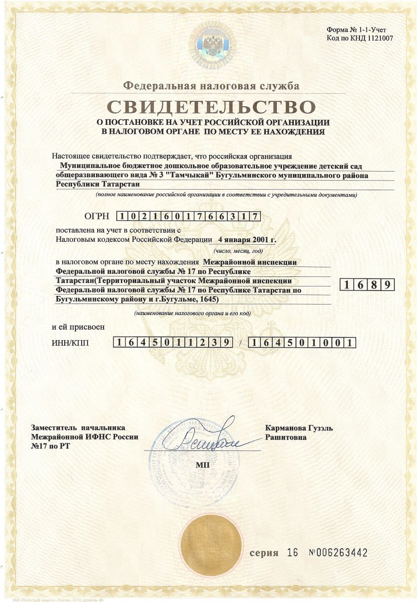 Свидетельство о внесении записи в Единый государственный реестр юридических лиц