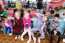 1 апреля для ребят детского сада было проведено развлечение «День смеха». В этот день детей наряжали в смешную одежду шиворот-навыворот, разрисовывали лица, делали забавные прически. Ребят развлекали клоуны, организовывали конкурсы, фокусы. Было весело и интересно, все остались довольны.