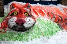 На территории детского сада в этом году расположились герои любимых малышами мультфильмов: «Крокодил Гена и Чебурашка», «Три поросенка», «Три кота», «Чиполлино», «Винни-Пух и все-все-все», «Маугли». У каждой снежной фигуры свое предназначение. Фигуры получились большими, прочными.