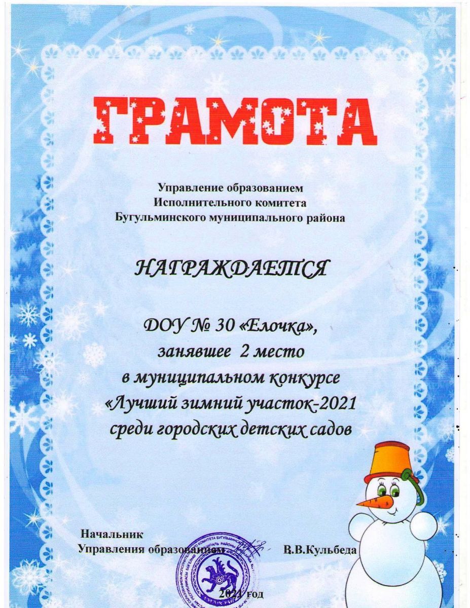 Мы заняли почетное второе место в муниципальном конкурсе «Лучший зимний участок – 2021». Ура!!!