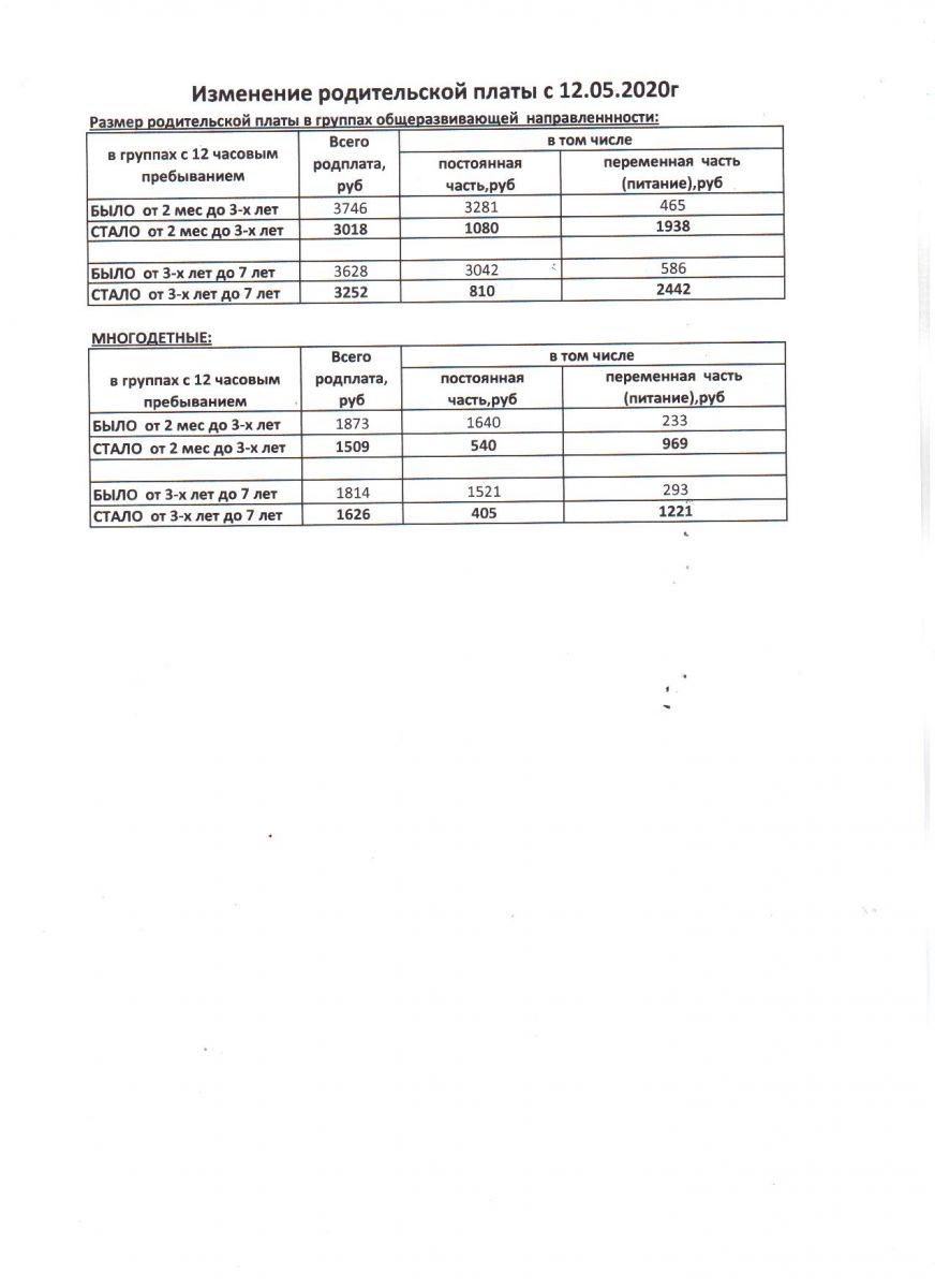 В рамках поручения Президента Республики Татарстан Минниханова Р.Н. (от 26 мая 2020 года) по вопросу изменения подходов к формированию размера родительской платы в образовательных организациях, реализующих программы дошкольного образования, подготовлены расчеты родительской платы по Бугульминскому муниципальному району.С 12 мая произошли изменения родительской платы с учетом режима работы, категории, вида детских садов. Всем родителям, которые уже произвели оплату за май месяц, будет сделан перерасчет в июне. -