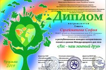 В республиканском конкурсе интерактивного плаката в рамках Медународного дня леса "Лес - наш зеленый друг" наша воспитанница Сулейманова София заняла 2 место (Руководитель: Дмитриева Е.М.)