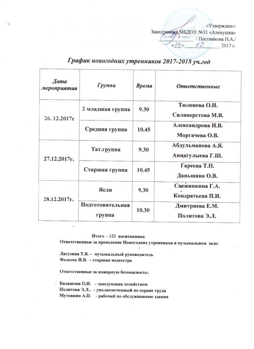 График новогодних утренников
