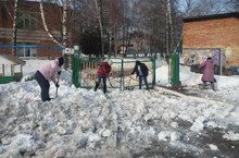 Работники Детского сада вышли на работы по рыхлению снега и уборку мусора с прилегающих территорий.