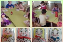 Вторая младшая группа поговорили о русском национальном костюме, о Матрешке, ее наряде, украсили наряд с помощью пластилина и цветных карандашей
