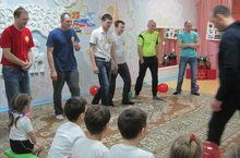 Сегодня в детском саду прошел праздник, посвященный Дню Защитника Отечества. Были приглашены папы. Участвовали команды двух групп «Убойная сила» (старшая татарская - воспитатели Гареева Р.А., Гадельшина З.И.) и «Богатыри» (вторая младшая группа – воспитатели Зарипова Т.Ю., Пахомова И.А.)