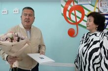 В преддверии дня работников дошкольного образования поздравил заведующую детским садом Розалию Миннуловну Каримову, которая руководит «Дельфином» уже 38 лет.