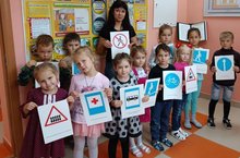 Дети подготовительной группы с помощью макета по ПДД раскрывали модели поведения дорожно-транспортных ситуаций. Используя наглядное пособие, закрепляли у детей символьные образы дорожных знаков.