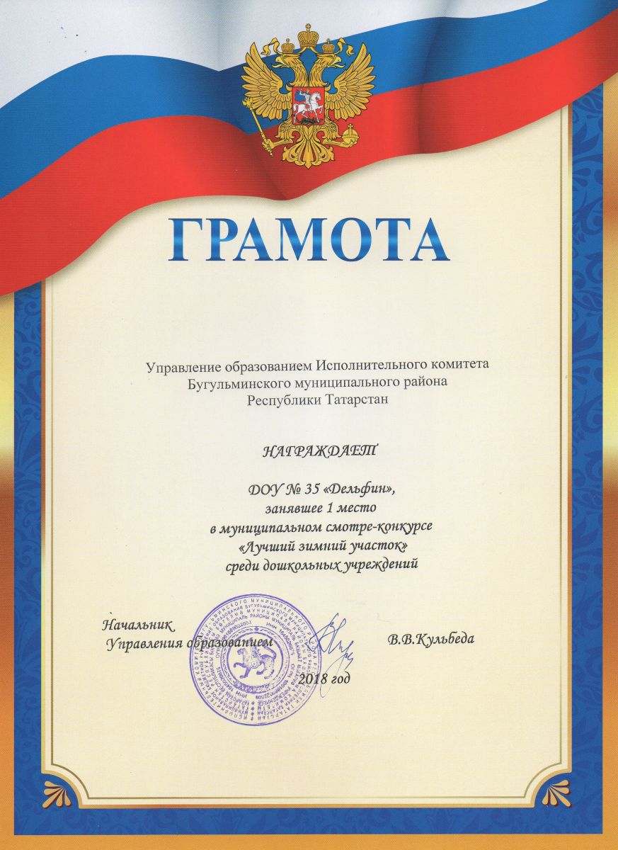 Муниципальное бюджетное дошкольное образовательное учреждение детский сад общеразвивающего вида №35 «Дельфин» Бугульминского муниципального района Республики Татарстан/ Татарстан Республикасы Бөгелмә муниципаль берәмлеге мәктәпкәчә белем бирү муниципаль бюджет учреждениесенең балаларны һәрьяктан тәрбияләп үстерү буенча бер яисә берничә өстенлекле юнәлештәге 35нче “Дельфин” балалар бакчасы
