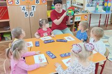 В первой младшей татарской группе «Сказка» (воспитатель Лукьянова Г.И.) малышей знакомили с зеленым и красным цветом, основными ориентирами в пространстве, легковым и грузовым транспортом. Дети рассматривали картинки и иллюстрации, играли в подвижные и дидактические игры.