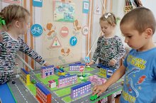 Во второй младшей татарской группе «Весёлый улей» (воспитатели Кошель Е.В., Киреева Р.М.) малыши познакомились со светофором и его сигналами; с легковым и грузовым транспортом, закрепили полученные знания в дидактической игре «Собери светофор». В ходе подвижных игр «Мы – водители», «Воробушки и автомобиль», «Будь внимательным», «Цветные автомобили» упражнялись ориентироваться в пространстве, останавливаться по сигналу воспитателя и т.д. Привлекла детей и изобразительная деятельность: малыши раскрасили сигналы светофоров и дорисовали колеса для автомобилей. При рассматривании книг с иллюстрациями по ПДД дети закрепили знания о безопасном поведении на улицах города.