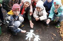 Сегодня на экологической тропе ребята группы "Веселый улей" повстречали гостя- Мишку. Вместе с ним и его друзьями Зайчиком и Волком ребята играли в народные игры: "У медведя во бору", "Зайка серенький сидит", " Волк и зайцы". А ещё ребята познакомили новых друзей с музыкальной хороводной игрой на татарском языке "Карусель". Лесные жители пообещали ребятам приходить к ним в гости.