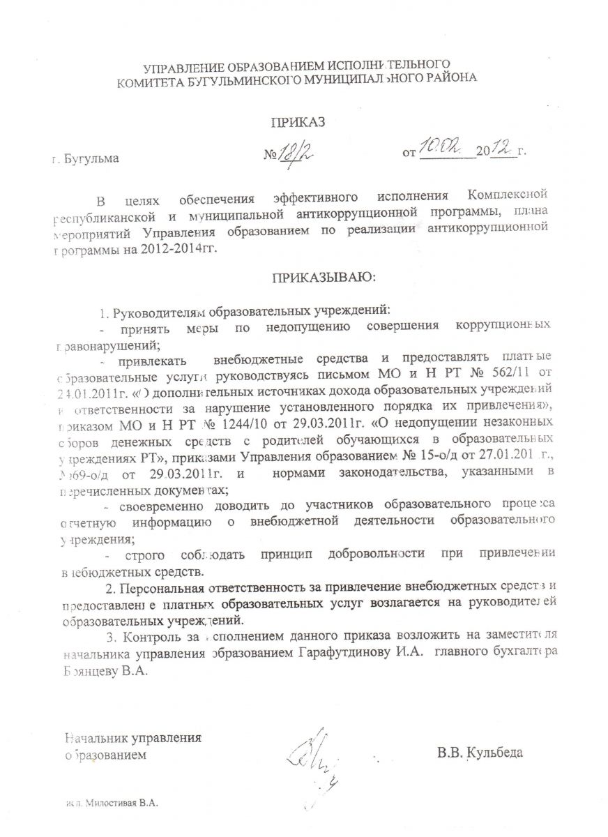 ⇒Положение о комиссии по противодействию коррупции при Управлении образованием исполнительного комитета Бугульминского муниципального района