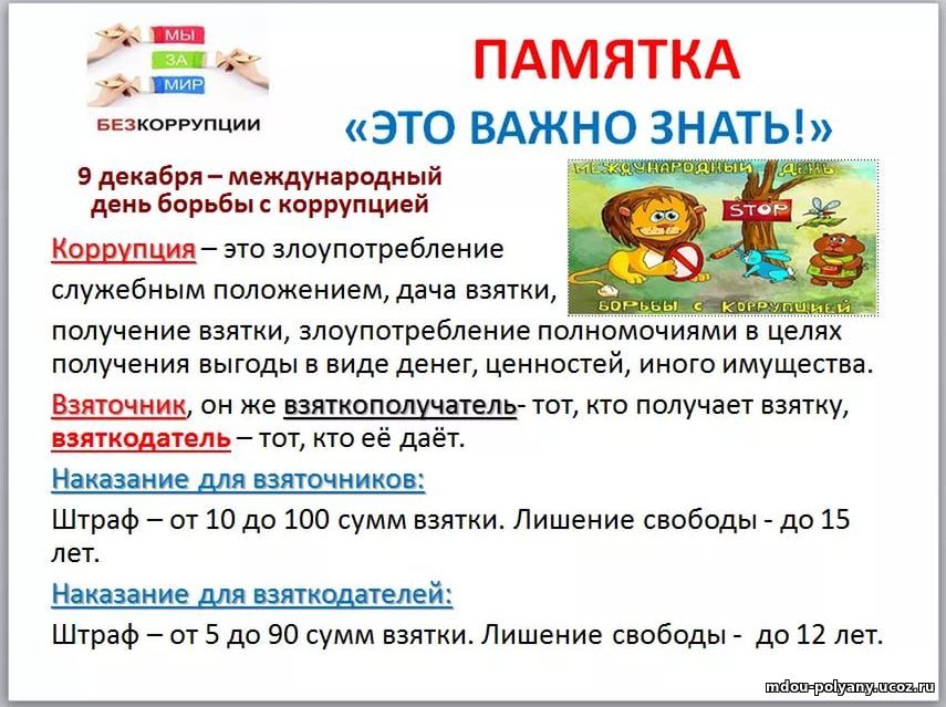 План мероприятий приуроченный к Международному дню борьбы с коррупцией (9 декабря) МБДОУ № 38 в  2025 году