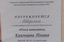 Педагоги и воспитанники нашего детского сада поздравляют победителя математической олимпиады Князькину Полину (воспитатели Рузанова Л.Н., Балякина О.С.)