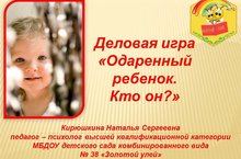 ДЕЛОВАЯ ИГРА ДЛЯ ПЕДАГОГОВ И ВОСПИТАТЕЛЕЙ ДЕТСКОГО САДА «ОДАРЕННЫЙ РЕБЕНОК. КТО ОН?» 30.03.2018