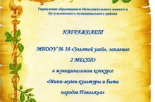 Наш детский сад занял 2 место в муниципальном конкурсе на лучший мини – музей татарской, русской культуры и народов Поволжья среди боразовательных учреждений Бугульминского муниципального района РТ