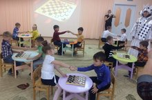 С целью популяризации игры в шашки, развития логического мышления и выявления интеллектуально одаренных детей, сегодня в детском саду состоялся турнир "Шашечный гроссмейстер" для детей старшего дошкольного возраста. Гостьей на турнире была Шахматная королева, дети познакомили ее с правилами игры и историей возникновения. Турнир прошел увлекательно и интересно. Победителями стали воспитанники подготовительных к школе групп: