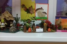 Воспитатели средней группы № 12 Хакимова Л.Р. и Хуснутдинова О.Н. в сотрудничестве с родителями организовали выставку из природного материала "Осень на окошке".