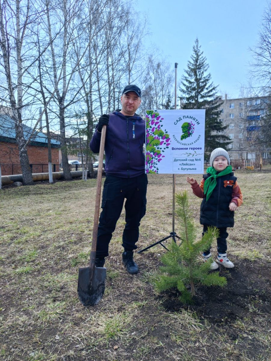 В преддверии 80-летия Победы в Великой Отечественной войне воспитанники детского сад №4 "Ляйсан" совместно с родителями и воспитателями посадили на территории 15 саженцев сосен, елей, лиственниц и берез. Посадочный материал предоставило ГКУ РТ "Бугульминское лесничество"
