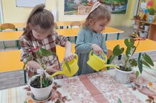 Так, педагоги старшей группы "Сказка" продолжают обучение детей простейшим навыкам ухода за комнатными растениями: поливать, рыхлить и опрыскивать, проводя ряд занятий познавательного характера и в целях воспитательной работы, направленной на привитие любви, заботы и гуманного отношения к природе -