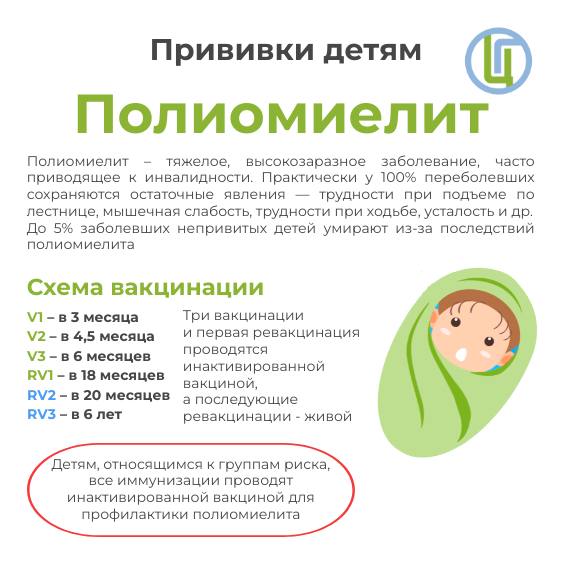 Если ваш ребенок по какой-то причине не привит от полиомиелита в соответствии с возрастом, обязательно сделайте прививку в ближайшее время! Вакцинироваться можно в поликлинике по месту жительства абсолютно бесплатно и безопасно.