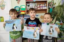 Сегодня воспитанники группы «Золотая рыбка» на занятии познакомились с удивительным миром Антарктиды и её прекрасными обитателями – пингвинами. Вспомнили и закрепили, что пингвины являются птицами, но летать не умеют. Зато пингвины очень хорошо умеют плавать. Для закрепления полученных знаний, ребята с удовольствием нарисовали пингвинов в черных фраках и белых жилетах.