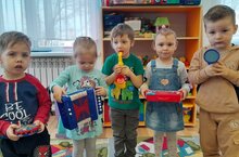 Воспитанники младшей группы знакомились с музыкальными инструментами. В гостях у ребят побывали - погремушки, балалайка, бубен, гармошка. Дети подходили к столу, и по желанию выбирали инструменты и самостоятельно рассматривали их. Ребятам очень понравились игры на музыкальных инструментах, для них это было очень волшебно и сказочно, ведь ребята успели не только посмотреть на музыкальные инструменты, но и поиграть на них.