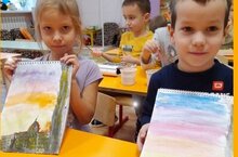 Маленькие эльфы на занятии по рисованию попробовали использовать разные акценты цветого колорита для создания ночного города.