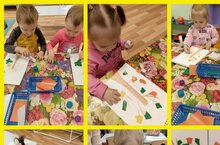 Детки младшей группы рисовали листопад в нетрадиционной технике - при помощи отпечатка листьев на бумаге