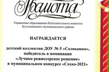 Наш детский сад принял участие в муниципальном детском театральном фестивале- конкурсе "Сайяр" и стал победителем в номинации "Лучшее режиссерское решение".