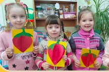 Ребята внимательно рассматривали картинки с изображением клубники, отвечали на вопросы. Свой клубничный день воспитанники решили завершить аппликацией на тему "Клубника".