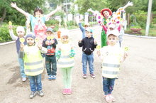В детском саду прошел месячник безопасности «Внимание – дети!», целью которого является формирование у детей дошкольного возраста безопасного поведения на дороге и закрепление основ безопасности жизнедеятельности в условиях лета. Проводились обучающие и практические мероприятия «Светофор – наш друг», «Знай и выполняй правила дорожного движения», «Дети и дорога!» и др., где воспитанники изучали на практике правила пешеходов и закрепляли ранее полученные знания по правильному поведению на дороге. А чему научились, ребята продемонстрировали на итоговом праздничном мероприятии «Чтоб у всех было хорошее настроение - соблюдайте правила дорожного движения!». Дети с удовольствием отвечали на вопросы викторины, в игровой форме учились вместе со сказочными героями решать дорожные задачи, находить выход из сложных ситуаций, замечать и объяснять ошибки своих товарищей. Закончилось познавательное сказочное путешествие Автодискотекой. Праздник получился веселым и интересным и мы надеемся, что каждый ребенок, выйдя на дорогу, обязательно будет соблюдать Правила Дорожного Движения.