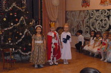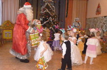 В подготовительной группе (воспитатели Моисеева Л.Н., Жигайло Л.Н.) 30 декабря был проведен новогодний карнавал. Весёлая, звонкая музыка подняла настроение детей и гостей. Дети с восторгом смотрели на ярко украшенную ёлку, весело водили хороводы. Но колдунья Ночь заколдовала звезды, небо, чтобы Дед Мороз не нашёл дорогу к детям. И только доброта детей, выраженная в танцах, спасла ситуацию. И веселье продолжалось. Дети перевоплощались в героев любимых сказок. Красочные, яркие костюмы украшали праздник. Очарованная Снегурочка и Принцесса, умный и хитрый Кот, гном Оле - Лукое, Король и Маркиз показали гостям настоящее актерское мастерство. А дед Мороз все-таки нашёл дорогу в детский сад. И своим сюрпризом, играми да плясками повеселил всех детей и гостей.